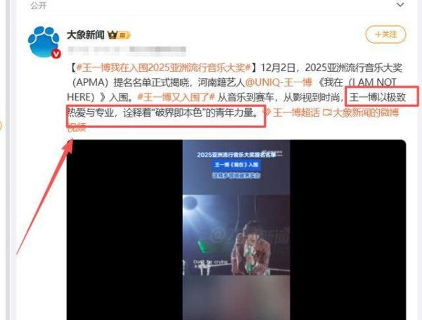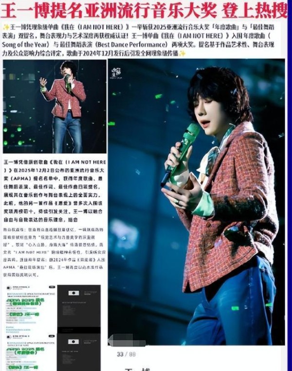 2025年12月,北京初雪还没化,王一博又把自己送上了热搜——这回不是因为机场街拍,也不是品牌站台,而是入围了亚洲流行音乐大奖(APMA)。评审团由12国制作人+格莱美评委组成,流量免进,只看作品。王一博的原创单曲《我在》在零宣传的情况下,靠着舞台硬实力杀进最终名单,官媒罕见地点名:“破界即本色”。一句话,把流量偏见撕了个口子。