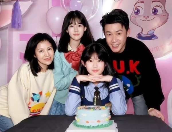 陆毅鲍蕾携两女出席活动,一家四口气质出众