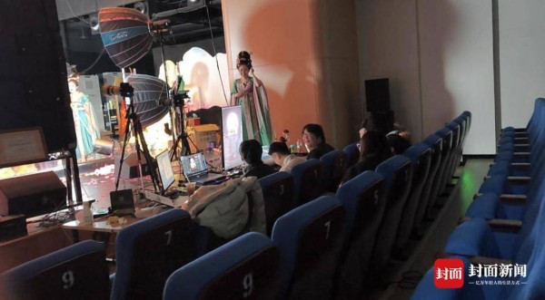 这里曾是陕西省民间艺术剧院小剧场,如今已成为全国首个开启线上“团播”的国有文艺院团——陕西歌舞剧院进行线上直播“实景舞台”。