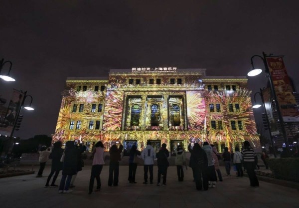 凯迪拉克·上海音乐厅推出迎新灯光秀。(本报记者叶辰亮摄)