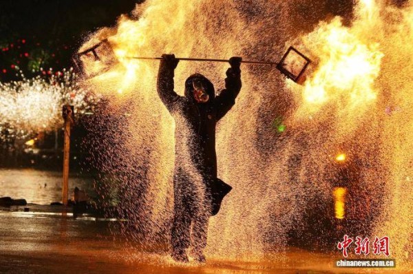 铁花绽、火壶舞!长沙非遗表演迎接2026年
