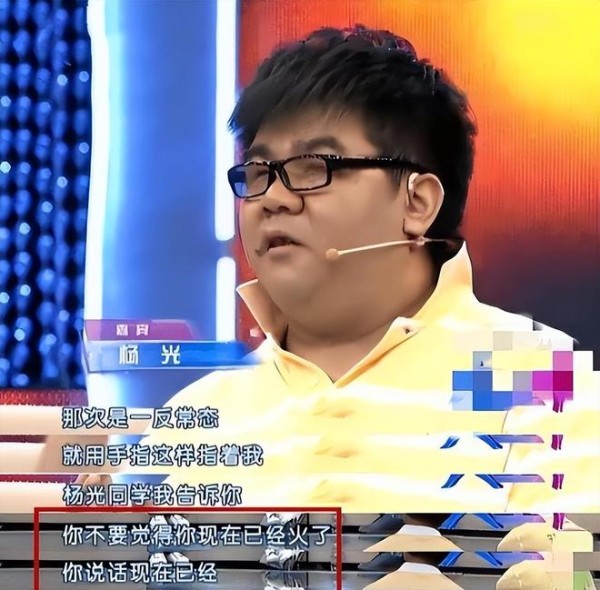 可好景不长,杨光红了没多久,就开始变了调子。仗着自己残疾和名气,对人越来越没礼貌,节目排练迟到是家常便饭,还冲工作人员发脾气。
