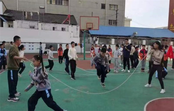 跳长绳是一项传统体育活动,通过跳绳运动可以促进学生心肺功能的提高,造就学生良好的意志品质,还可以培养学生团结协作的精神。比赛场面异常激烈,场上跳绳的同学身轻如燕,跳的轻松自在,他们快速、灵巧地穿梭其中,像跳起了“绳上芭蕾”;场下啦啦队的加油声、喝彩声、计数声此起彼伏,整个校园洋溢着蓬勃的朝气。