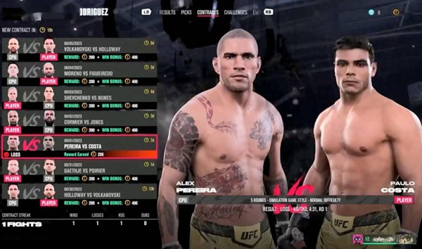 格斗周契约赛:玩家每天都会收到比赛邀请,与AI对手一较高下,而且这些比赛都是直接取材当下的UFC活动日历。