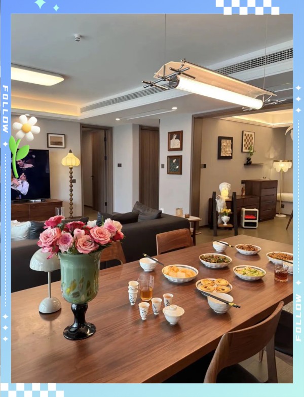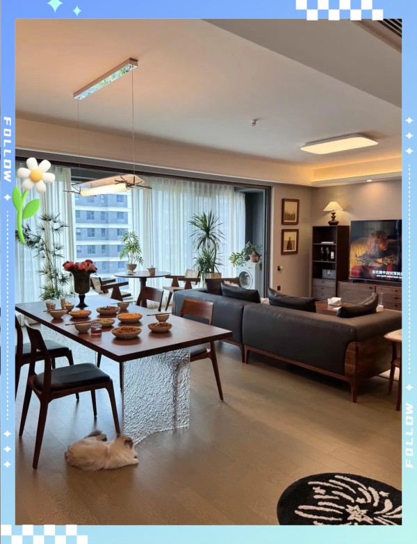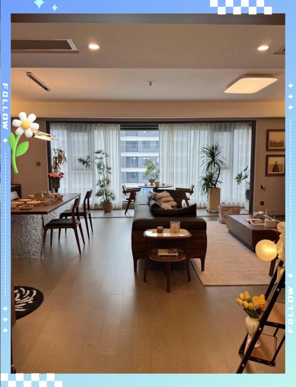 例如,近期在社交平台上备受瞩目的是一位年轻女子,她晒出了自己143平方米的家居布置,因其整洁有序而受到网友们的热烈追捧,甚至被戏称为“样板间”。然而,真正懂得生活的人都知道,一个好的住家环境并非仅仅为了展示,而是在日常生活的点滴积累中,逐渐孕育出那份自在与舒适。 阳光透过落地窗洒满空间,高天花板与分散照明设计营造出明亮且温馨的氛围。