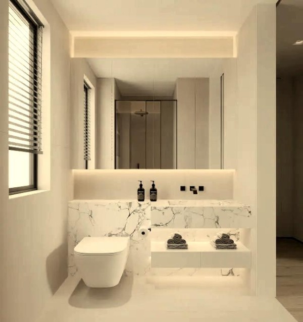 卫生间采用了干湿分区的创新设计,墙排式浴室柜与智能镜面的搭配,不仅节省了空间,还极具实用性。而智能镜面不仅提供了便捷的收纳功能,其奶油白的配色更是为这个洗手间增添了一抹温馨与雅致。每一次使用,都能让人心情愉悦,仿佛置身于一个能够治愈心灵的温馨角落。
