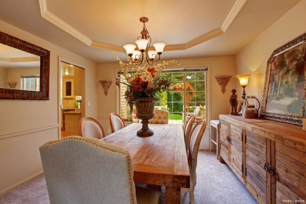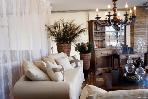 除了色彩、家具和材质的选择外,家居配饰也是美式风格室内设计中重要的组成部分。美式风格大量使用植物和花卉作为装饰元素,如常见的绿植、花束和花瓶等。装饰物多以传统手工艺品为主,如绣花墙帘、编织地毯、陶瓷瓶等。这些装饰物的运用不仅能够增加空间的美感,还可以增加居住者的情感和幸福感。