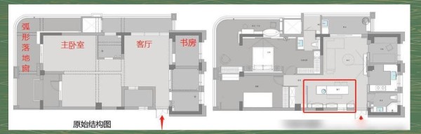 经过这样的改造,整个空间仿佛被展开的纸页,瞬间焕发生机,光线能触及每个角落,各个功能区也变得井然有序。
