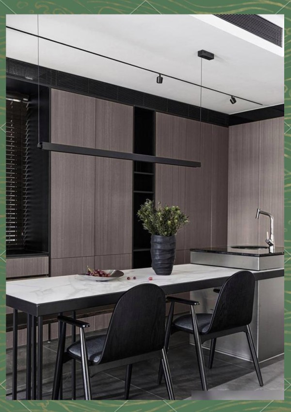 在传统家居设计中,“阴阳调和”的理念被广泛应用。低饱和度的黑白灰色彩,如同“阴”的象征,而木饰面与浅绿色的加入,则如同“阳”的注入,使得整体设计既不显得单调,又达到了和谐统一。