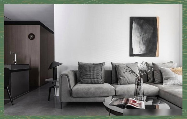 观察客厅的设计,不难发现其巧妙之处:白墙与灰绒沙发相互映衬,再融入木饰面的温暖色调,宛如一杯温润的蜂蜜水,初尝并不浓烈,却令人久坐之后愈发感到舒适。这种低饱和度的黑白灰色调,恰似空间的“基调”,能够和谐地“容纳”各类元素,避免杂乱无章,反而随时间流转愈发显现其深邃韵味。