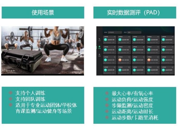 室内运动过程性运动负荷监测 多用于室内儿童体能训练/青少年体能训练/中老年人室内运动等运动强度监测及风险预警评估,实时运动负荷等生理指标监测 团队远距离实时运动负荷监测 可实时多人远距离监测,监测距离可达200米以上