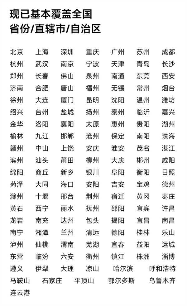 从城市分布看,北京、上海、广州、深圳等核心城市自不必多说,苏州、成都、杭州等新一线城市的网点密度同步提升,甚至像榆林、九江、德州等地级市也覆盖了。
