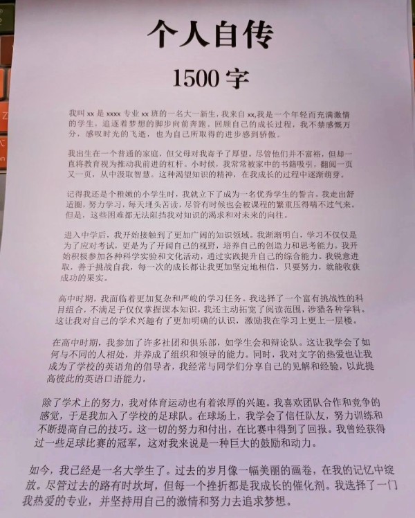 大家好,我是xx,一名充满激情的大学生。今天,我想和大家分享我的个人自传,回顾我如何从稚嫩走向成熟。