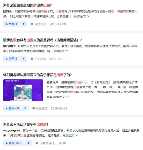 最近在网上冲浪的时候,发现许多歌手的粉丝会格外在意自己偶像的歌曲有没有“出圈”,