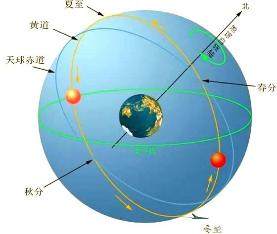 从天文学的角度来看,地球围绕太阳公转一周,形成了一年。而从地球上看,太阳仿佛在天空中描绘出了一个巨大的圆圈,这就是我们所说的黄道。黄道是地球公转轨道在天球上的投影,它形成了一个平面,被称为黄道面。同时,地球自身的赤道也形成了一个平面,即赤道面。然而,这两个平面并不完全重合,它们之间存在一个夹角,被称为黄赤交角。这个夹角是23°26′,它导致地球在围绕太阳旋转时,自转轴与黄道面始终保持66°34′的夹角。换句话说,地球始终以一定的倾斜角度围绕太阳旋转。
