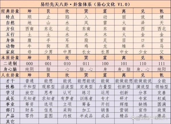 接下来,我们就详细讲解一下,这八种性格类型,怎样与先天八卦进行一一对应。