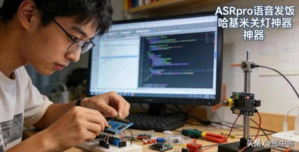这款设备采用开发板驱动舵机实现物理开关操控,核心功能是通过语音指令“哈基米”控制宿舍灯的开关,还能切换蹦迪灯光特效。