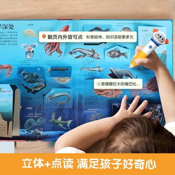 乐乐趣点读笔依托乐乐趣优质书品资源,从孩子喜爱的揭秘翻翻书入手,汇集科学、人文、自然等领域,是一座专为孩子打造的便携有声百科图书馆。目前乐乐趣2000+正版图书点读库持续扩展中,趣味科普、绘本、双语、认知等一应俱全。