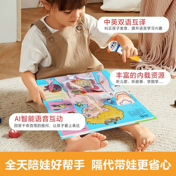 互动立体翻页搭配点读笔设计,让孩子爱上阅读,从“要我学”秒变“我要学”。AI智能语音互动,及时回答千奇百怪的提问,让孩子爱上表达;丰富的内载资源,听儿歌、听故事、学国学……中英互译、哄睡、磨耳朵,无所不能。即使父母上班忙、寒暑假爷爷奶奶带孩子,也能省心省力做个全天陪娃的好帮手。