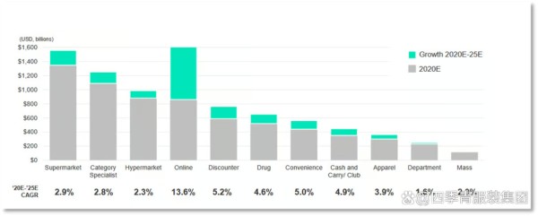 首先,回顾各大预测平台对2025年的市场规模预测。根据FashionNetwork.com的数据,全球时尚产业规模年增率为3.9%,在众多细分渠道中,电商市场规模的增率尤其突出。