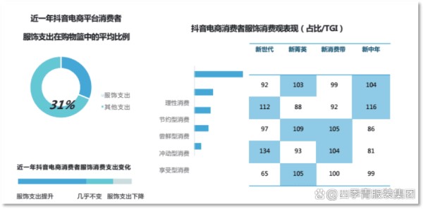 此外,服饰消费的趋势越来越注重与生活方式的结合。随着生活水平的提升,消费者对服饰的需求不仅仅停留在功能性上,更注重款式、舒适度以及品牌文化的契合。服饰消费的提升与社交平台密切相关,尤其是通过抖音等平台,消费者能够在看到真实场景展示和互动后更倾向于购买。品牌通过精准的用户画像、个性化的推荐以及社交媒体的强力推广,能够迅速提升用户的购买意向,形成社交推荐和口碑传播的良性循环。因此,未来服饰品牌需要在内容创意、产品创新以及消费者互动方面做出更多的努力,才能在日益激烈的电商竞争中脱颖而出。