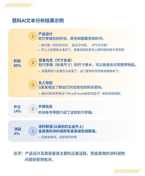 利用AI技术进行社交聆听,除了对图像进行识别分析外,针对社媒用户穿搭图片的配文发帖和粉丝评论,还可以进一步利用自然语言处理(NLP)的AI技术对文本进行解析,关联消费者关注的话题与情感调性,为品牌的产品设计、数字营销和客户体验改进等提供指导。