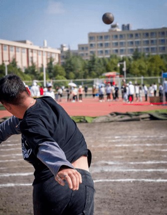 你们挥舞着充满力量的双臂,看着实心球化作美丽的弧线,你们抛出了青春的美丽。