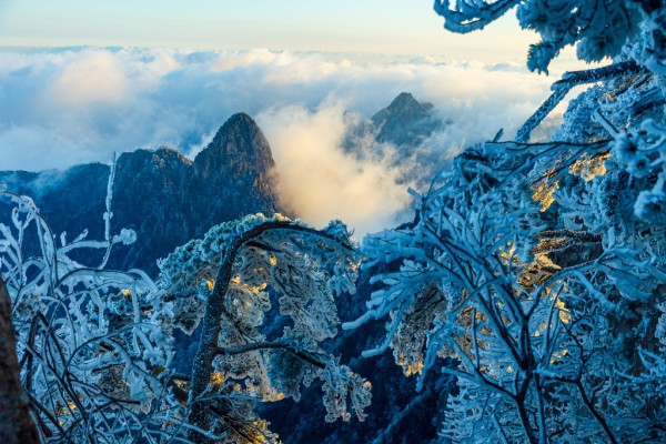 第1现场|黄山入冬:雾凇云海日出 “三景同框”