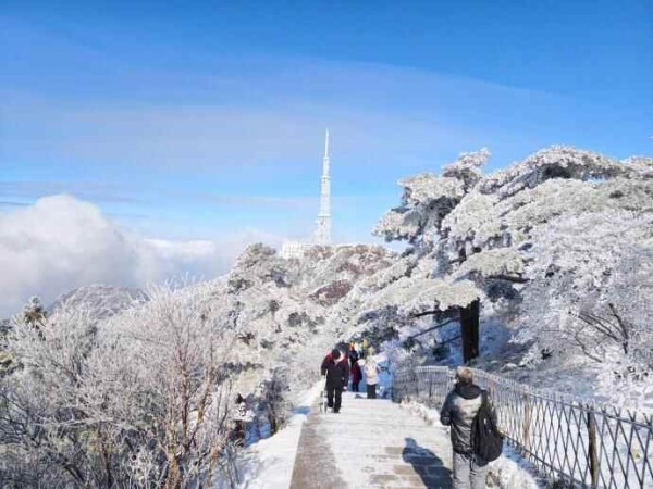 整座山峰银装素裹,玉树琼枝,形成如梦似幻的冬日仙境,吸引了众多摄影爱好者和户外游客前来观赏。