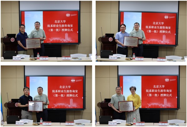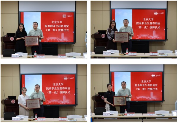 最后,樊志为校本部第一批院系职业生涯咨询室授牌,并与刘芳一起为医学部2家院系职业生涯咨询室授牌。第一批院系职业生涯咨询室分别为:外国语学院“职语空间”生涯发展咨询室、前沿交叉学科研究院“前沿问路”职业生涯发展咨询室、生命科学学院职引“生”涯咨询室、元培学院元培职业生涯发展咨询室、工学院“工道家国”职业生涯发展咨询室、计算机学院“计启新程”职业生涯咨询室、信息科学技术学院信码智联生涯工作室、光华管理学院星河咨询室、法学院“律见未来”职业生涯发展咨询室、深圳研究生院南燕职业咨询室、药学院“药研未来”职业生涯咨询室、公共卫生学院“职引卫来”生涯发展咨询室。