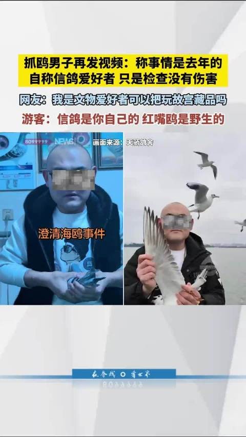 更值得关注的是,2026年1月1日20点31分,该博主在网络发布了“澄清海鸥事情”的视频,声称:“我在这里给大家就是重申一下,我没有伤害它。当时我真是检查,因为我后面一个小伙子,咱也不认识人家,应该也是旅游的,去年的事,不是今年的事。他抓了之后,我应该记得很清楚,我检查的时候,应该掉了一个羽毛,第3根还是第4根,他给抓掉了。我检查的时候我还跟他说,我说‘朋友咱们别这样弄’,因为我是一个信鸽爱好者,家禽什么鸡鸭鹅都是属于禽类,这种东西我特别喜欢,不掺和什么伤害它,知道吗?”