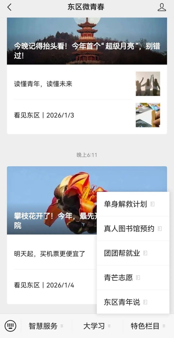 关注“东区微青春”微信公众号→点击“特色栏目”→进入“真人图书馆预约”。