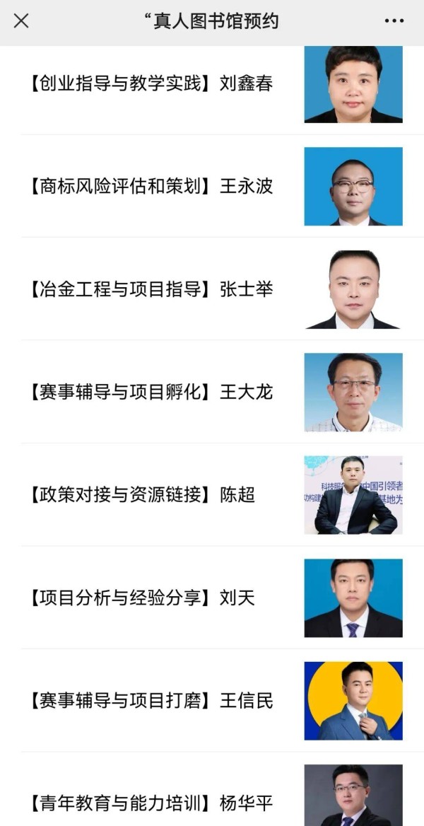 我们将青创导师化为“真人图书”,你可以像在图书馆挑选书籍一样,选择最适合你的那一位,与TA面对面,一起聊你最困惑的问题,听最真实的成败经历。这不是单向授课,而是双向互动、答疑解惑的成长体验。