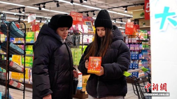 俄罗斯游客在同江一家超市内购物。 王玮琦 摄