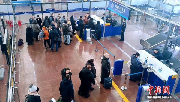 中新网佳木斯1月4日电(刘官灵 梁晨 王凯锋)元旦假期,同江口岸迎来跨境旅游热潮,上千中外游客齐聚同江共度新年。