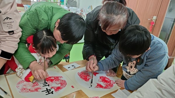 趣味游戏环节热闹非凡,“福运套圈”“亲子接力赛”等经典游戏轮番登场。孩子们化身勇敢的小挑战者,与家长默契配合,在奔跑、协作中收获快乐,欢呼声、加油声回荡在园区每个角落。手工创作区更是创意十足,亲子家庭围坐一堂,手持彩纸、彩泥、剪刀等材料,精心制作新年灯笼、剪纸窗花、福字贺卡等作品。家长们耐心指导,孩子们发挥奇思妙想,一笔一划勾勒祝福,一折一剪凝聚创意,一件件充满童真的手工作品不仅装点了校园,更承载着对新年的美好期许,让孩子们在动手实践中感受传统文化魅力,在亲密互动中增进亲子情感联结。