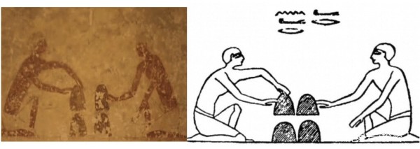 公元前 21 世纪的贝尼哈桑公墓 Baqet III 墓墙上的一幅画描绘了另一个可能是古代魔术的场景。在画中,两个男人围坐在一张桌子旁,桌上摆着倒立的碗。这幅画还描绘了杂耍和其他游戏和休闲活动。