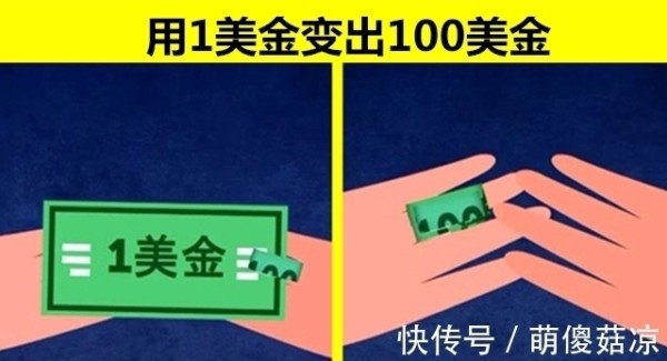 首先魔术师会将一张100美金的纸币折起来,隐藏在手指缝里,然后开始展示1美金纸币时候,狡猾的把折好的100美金移动在展示纸币的左上角,接着就是将1美金同样折好,最后将它们进行调换,这样再次展开就变成了100美金。对于这个魔术,其实我们普通人练习一段时间之后,也是可以做到的。