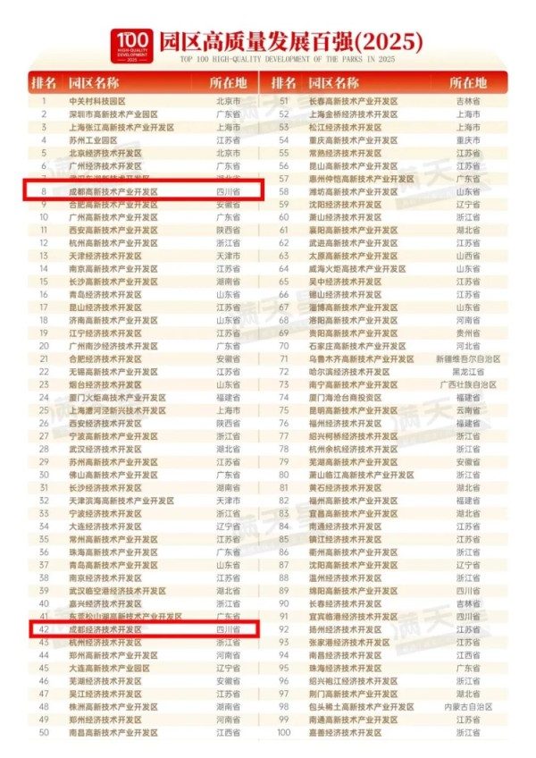 根据去年10月,赛迪顾问发布的园区高质量发展百强(2025)榜单,全国前十强园区中,除了成都高新区,也还有多家在这方面有明确的大动作。