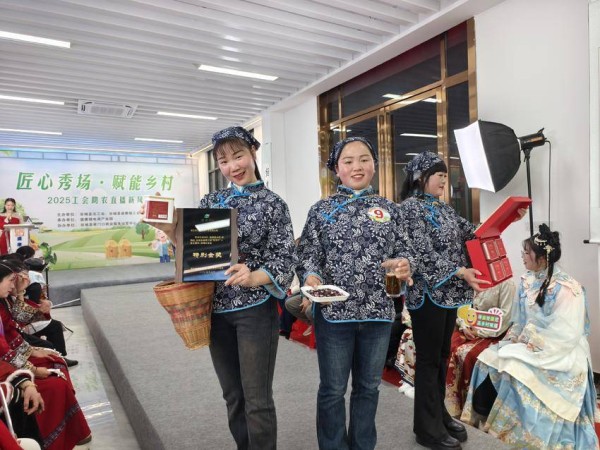 活动现场,九家本土企业化身“乡村超模”,围绕“品牌创意展示”“直播技能应用”“产品故事讲述”等方面,在延伸T台与多机位直播间前进行展示。从生态稻虾米的田园情景剧,到非遗腐乳的技艺情景还原,再到葛根“深山馈赠”的生动诠释,展现了新农人从“会生产”到“善展示、能营销”的职业技能飞跃。