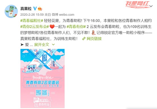 早在2020年,以女团为主题的《青春有你2》尚未正式开播,蒙牛真果粒就已经上线官方唯一助粒小程序——真果粒青春福粒社,号召粉丝“为训练生助粒”,将品牌冠名和产品销售结合在一起。