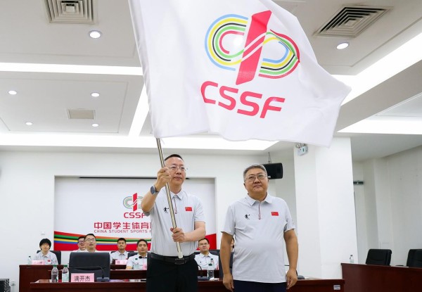 7月8日,中国学生体育联合会秘书长刘立新(右)和第32届世界大学生夏季运动会中国代表团执行团长滕连帅在授旗仪式上。新华社记者 胡星宇 摄 本届大运会,中国代表团夺得女篮冠军和女子三人篮球亚军。据介绍,这两支队伍完全植根于校园,运动员是来自北京师范大学、清华大学、华中科技大学、中南大学、上海交通大学、云南师范大学6所高校的在校学生。她们都是从校园联赛层层选拔培养出来的优秀运动员。在26日的中国男篮职业联赛选秀大会上,又有12名大学生球员进入职业俱乐部。近几年,校园联赛发展迅猛,高中篮球联赛和大学篮球联赛已经成为社会广泛关注的赛事。