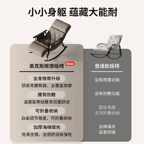 不仅如此,奥克斯按摩椅还注重健康关怀。它强调全身按摩对老年人和忙碌人群缓解压力的重要性,帮助他们恢复活力。加厚海绵与丝棉填充,带来极致的坐感和支撑感,让每一次按摩都成为一种享受。