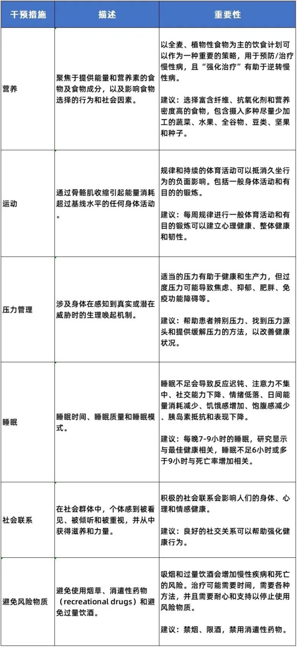 表 生活方式干预的“六大支柱”