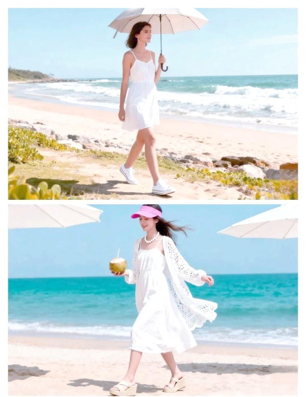 在款式上,我们应优先选择宽松版型,避免紧身衣物阻碍散热。日常通勤时,可以尝试轻薄棉麻衬衫搭配高腰阔腿裤,浅蓝、米白等浅色系能够反射阳光,保持清爽。户外游玩时,短袖T恤、吊带裙搭配运动短裤是不错的选择,再配上帆布小白鞋或露趾凉鞋,轻松减少脚部闷汗。