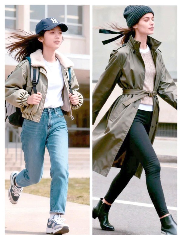 当寒冷程度适中时,短款羽绒服或派克大衣可以成为外层的选择,内搭厚毛衣或加绒卫衣。下装方面,加绒的legging或羽绒裤能够提供额外的保暖层。同时,搭配加绒马丁靴可以进一步提升脚部的保暖性。