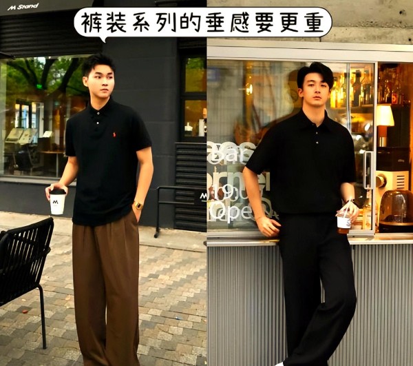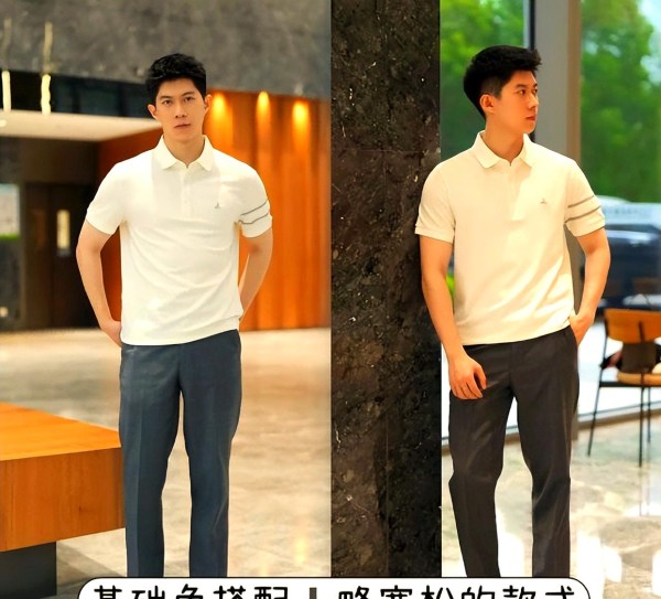 与Polo衫相搭配的裤子,建议选择简洁利落的款式,避免过于复杂的样式。这样的搭配无论是在通勤时,还是与朋友、家人聚会时,都能展现出大方得体的形象,轻松搭配出简约而不失时尚的造型。