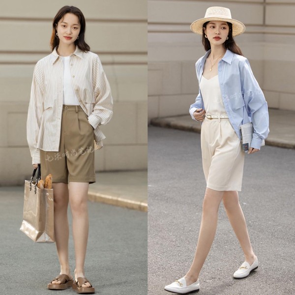 早秋正是穿衬衫的季节,如果天气还没那么快转凉,可以用衬衫内搭一件吊带背心当作防晒衣,下装搭一条百慕大短裤,自在休闲又带着几分帅气,简简单单就很好看。