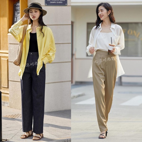天气稍微转凉后,可以把短裤换成长裤,走大女人风可以试试搭西装阔腿裤,舒适慵懒又不失气场,日常还可以搭棉麻裤,休闲裤,看着就很舒服。