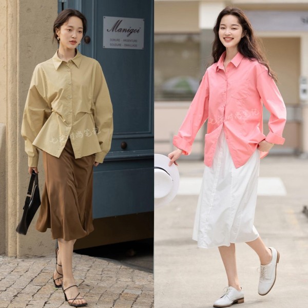上班的时候,衬衫最好选择简洁百搭的款式,颜色方面首选低调的中性色,如果觉得基础款不容易穿时髦,也可以考虑低饱和度的彩色,不容易穿得呆板,更有活力。